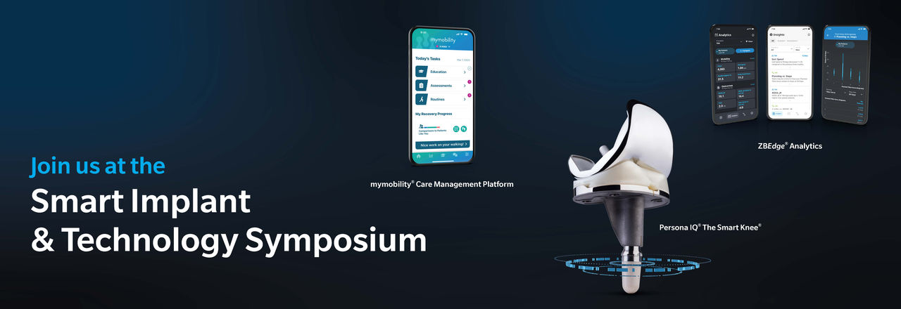 Smart Implant & Technology Symposium is a faculty-led medical education* experience for data driven surgeons and care teams. This immersive symposium deep dives into the world’s first smart knee, Persona IQ®, the mymobility® Care Management platform, and the ZBEdge Analytics data ecosystem. Through expert faculty insights, real-world case studies, and implementation frameworks, attendees will be enabled to operationalize smart implants, leverage data, and scale a data-driven total knee arthroplasty practice.