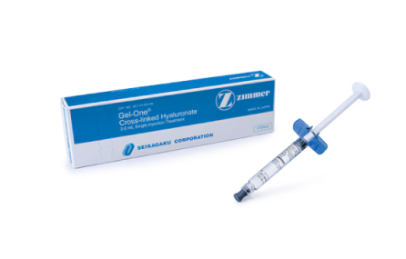 *Gel-One important safety information: Before using Gel-One Hyaluronate, tell your doctor if you are allergic to hyaluronan products, cinnamon, or products from birds such as feathers, eggs, and poultry. Gel-One Hyaluronate is only for injection into the knee, performed by a doctor or other qualified healthcare professional. You should not receive Gel-One Hyaluronate injection if you have a skin disease or infection around the area where the injection will be given. Gel-One Hyaluronate has not been tested to show pain relief in joints other than the knee and for conditions other than OA. Gel-One Hyaluronate has not been tested in patients who are pregnant, mothers who are nursing, or anyone under the age of 21. You should tell your doctor if you think you are pregnant or if you are nursing a child. Talk to your doctor before resuming strenuous or prolonged weight-bearing activities after treatment. The effectiveness of repeat treatment cycles of Gel-One Hyaluronate has not been established. The side effects most commonly seen after injection of Gel-One Hyaluronate in the clinical trial were knee pain, swelling, and/or fluid build-up around the knee. These reactions are generally mild and do not last long. If any of these symptoms or signs appear after you are given Gel-One Hyaluronate or if you have any other problems, you should call your doctor. Ask your surgeon if you are a candidate and discuss potential risks. For additional information, call 1-800-447-5633, or visit www.zimmerbiomet.com.