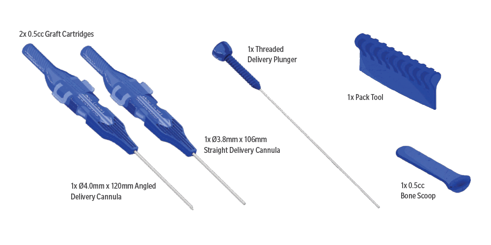 - Multiple graft cartridges to allow for streamlined delivery process