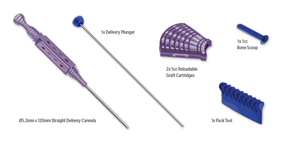 - Straight delivery cannulas in kit for percutaneous autograft delivery