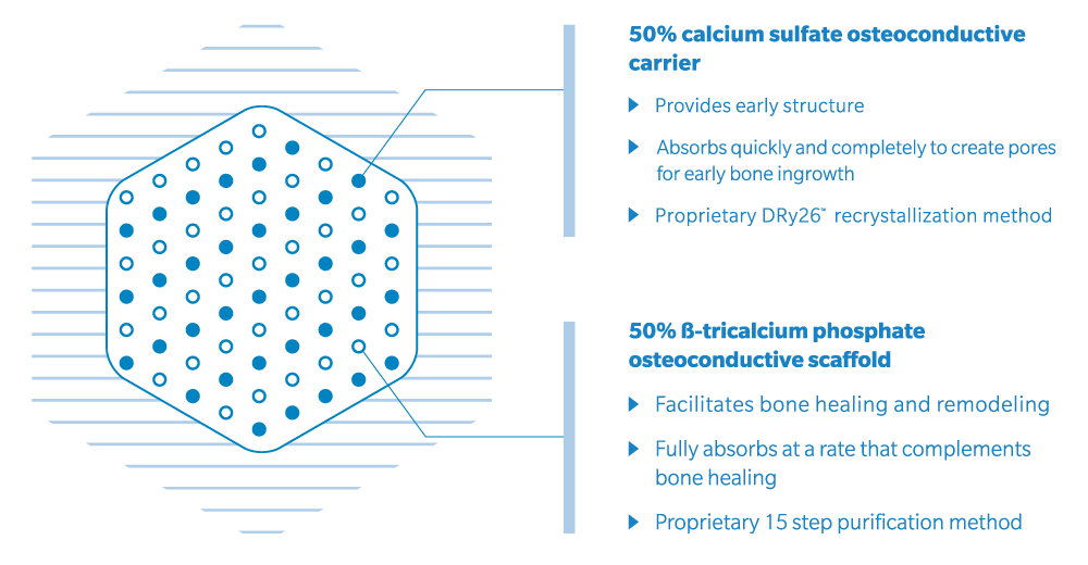 genex is a precisely balanced ß tricalcium phosphate/calcium sulfate hemihydrate compound with distinct design properties: