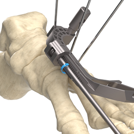 The system is internal to the bone (intraosseous), which is intended to help minimize the need for hardware removal due to pain and irritation reported with traditional external plating constructs of first tarsometatarsal arthrodesis.1