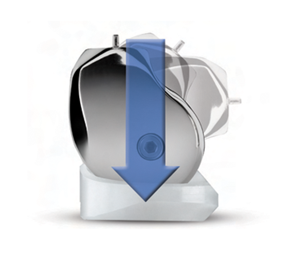 - Utilizes the same kinematics as the RH Knee – designed to maintain centralized contact throughout ROM (from -3° of hyperextension to 120°) resulting in 95% condylar loading through the tibial condyles.