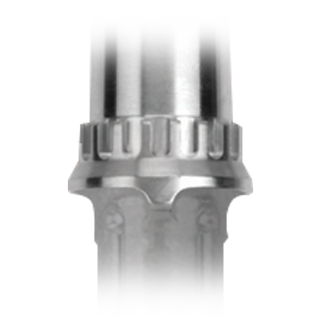 - Press-fit stems are splined for secure initial press fit with a variable stiffness (VS) tip designed to help reduce tip stress inside the bone.