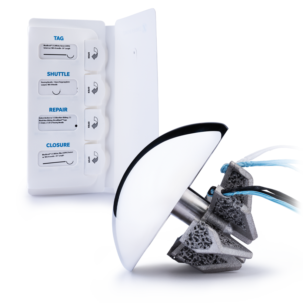 Designated Subscapularis Repair Kits combined with an efficient instrument tray, featuring intuitive anatomic sizing, delivers a streamlined approach to stemless anatomic shoulder replacement.