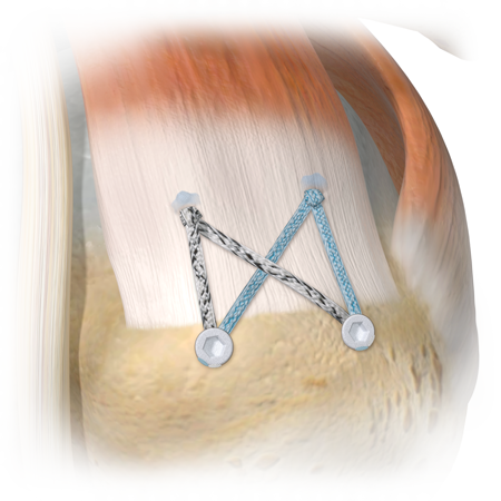 A soft tissue repair augmentation technique designed to support healing at the tendon-to-bone interface.