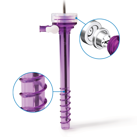 - Provides a portal for passage of implants and surgical instruments into the joint space. The rigid material and threads provide stabilization in the tissues. The translucent body allows for easy visualization of instrumentation and suture. The seal design (1) and integrated flow control lure-lock aid in joint distention. The system is available in multiple sizes.