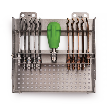 Four instrument caddies contain reusable guides and reamers