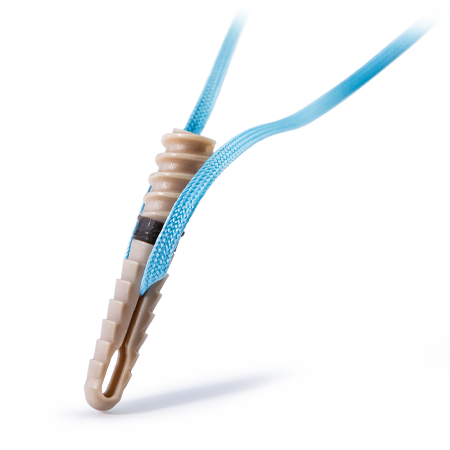 Unique eyelet/cleat design allows tension to be set, held, and reversed by the surgeon (if needed) after anchor insertion, and maintained throughout deployment.
